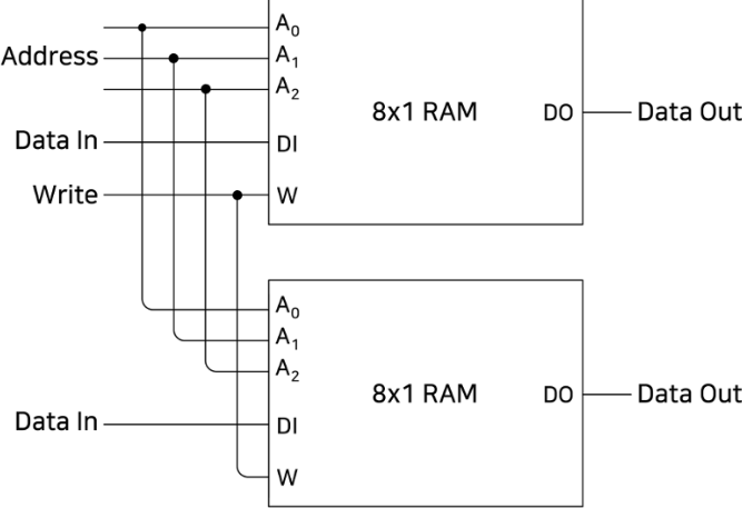 ○ Dara In은 각 8×1 RAM에 별도로 입력이 들어감