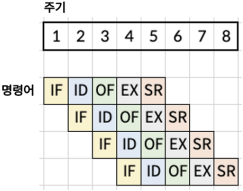○ 파이프라인: 하나의 작업에 필요한 일을 세부적으로 나누어서 동시에 다른 세부작업을 실행하는 기법