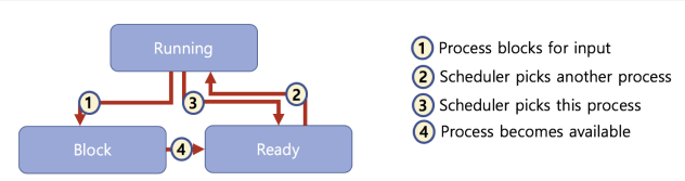 ○ block state: 특정 이벤트 발생 대기 상태(예: 프린팅이 다 되었다!)
